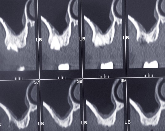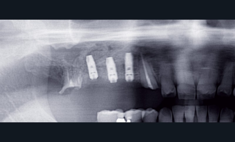 J’ai une question au sujet d’une complication consécutive à un comblement sinusien réalisé il y a 4 mois(fig. 1, 2, 3, 4 et 5).