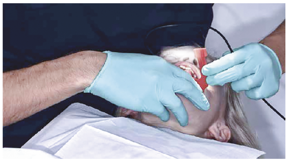 Son plus grand biseau représente une partie plane qui se pose sur la gencive pour glisser dessous avec un angle de maximum 20 degrés [3]. Quand la gencive blanchit suite à la vasoconstriction, la seconde phase de l’anesthésie intra-osseuse, la pénétration de l’os cortical, peut régulièrement se faire sans mise en rotation et en prenant garde de ne pas viser le germe de la dent permanente [4].