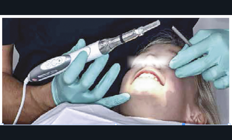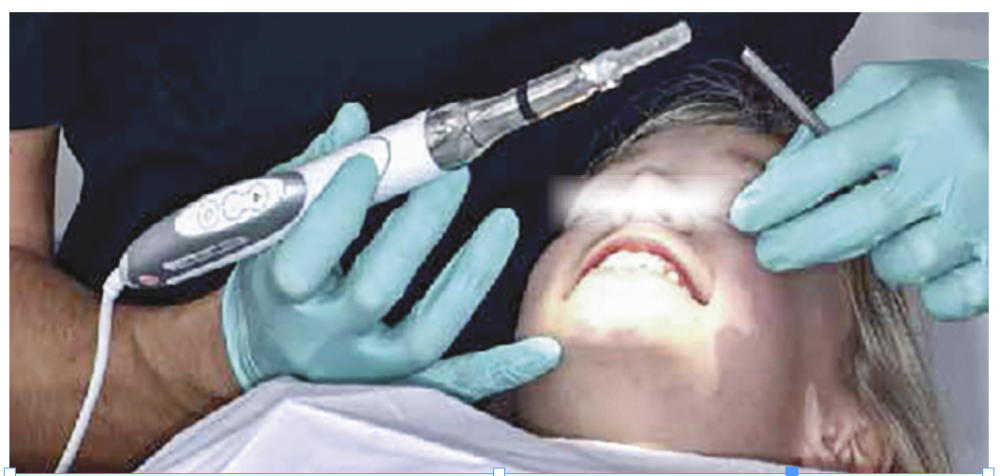 Puis l’injection d’une demi-carpule d’articaïne 1/100 000 est lente, totalement indolore et contrôlée électroniquement [5]. L’isolation et le soin peuvent alors se passer calmement et efficacement.