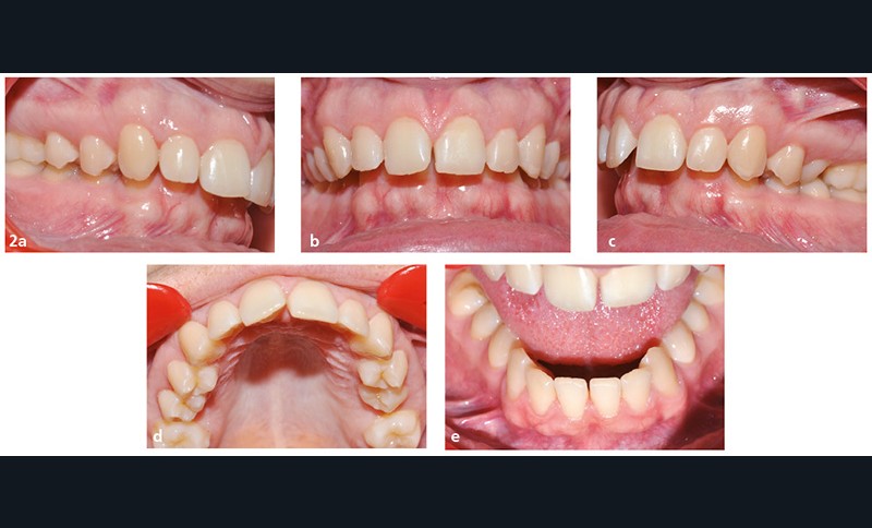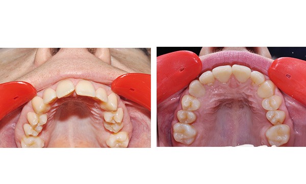 La patiente est une adulte de 22 ans présentant une rétrognathie mandibulaire associée à une endoalvéolie mandibulaire avec un défaut d’occlusion entre 14-15 et 44-45. Le contexte vertical est hypodivergent avec une forte supraclusion incisive.