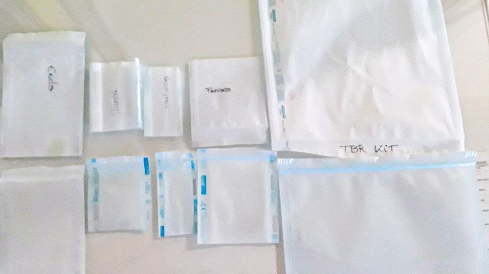 Pour pouvoir définir la taille de gaine de stérilisation et sa longueur, afin qu’elle soit adaptée aux instruments, j’ai mesuré ces derniers. J’ai deux techniques pour réaliser les différents sachets précoupés :
