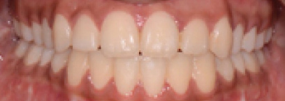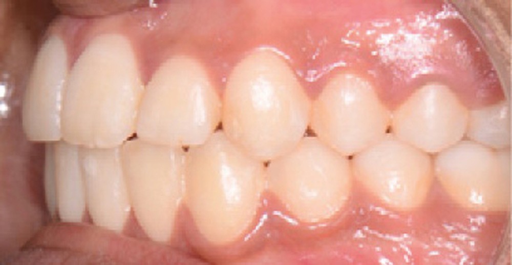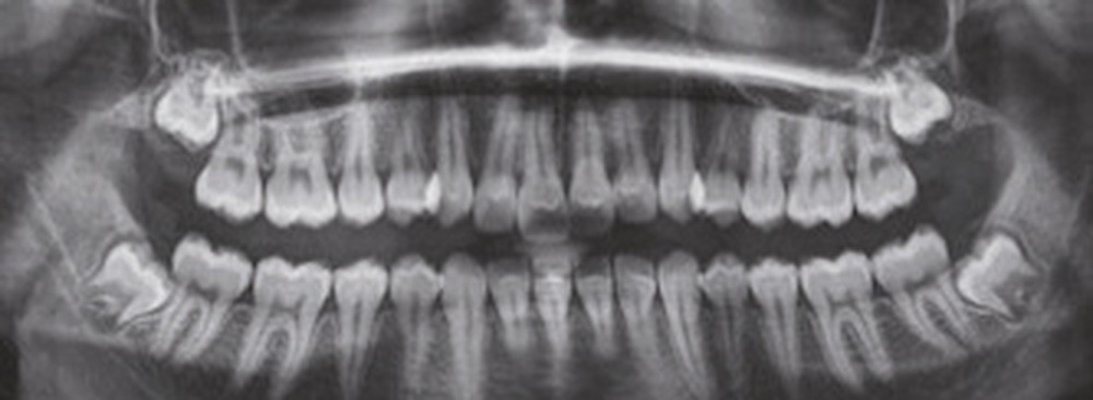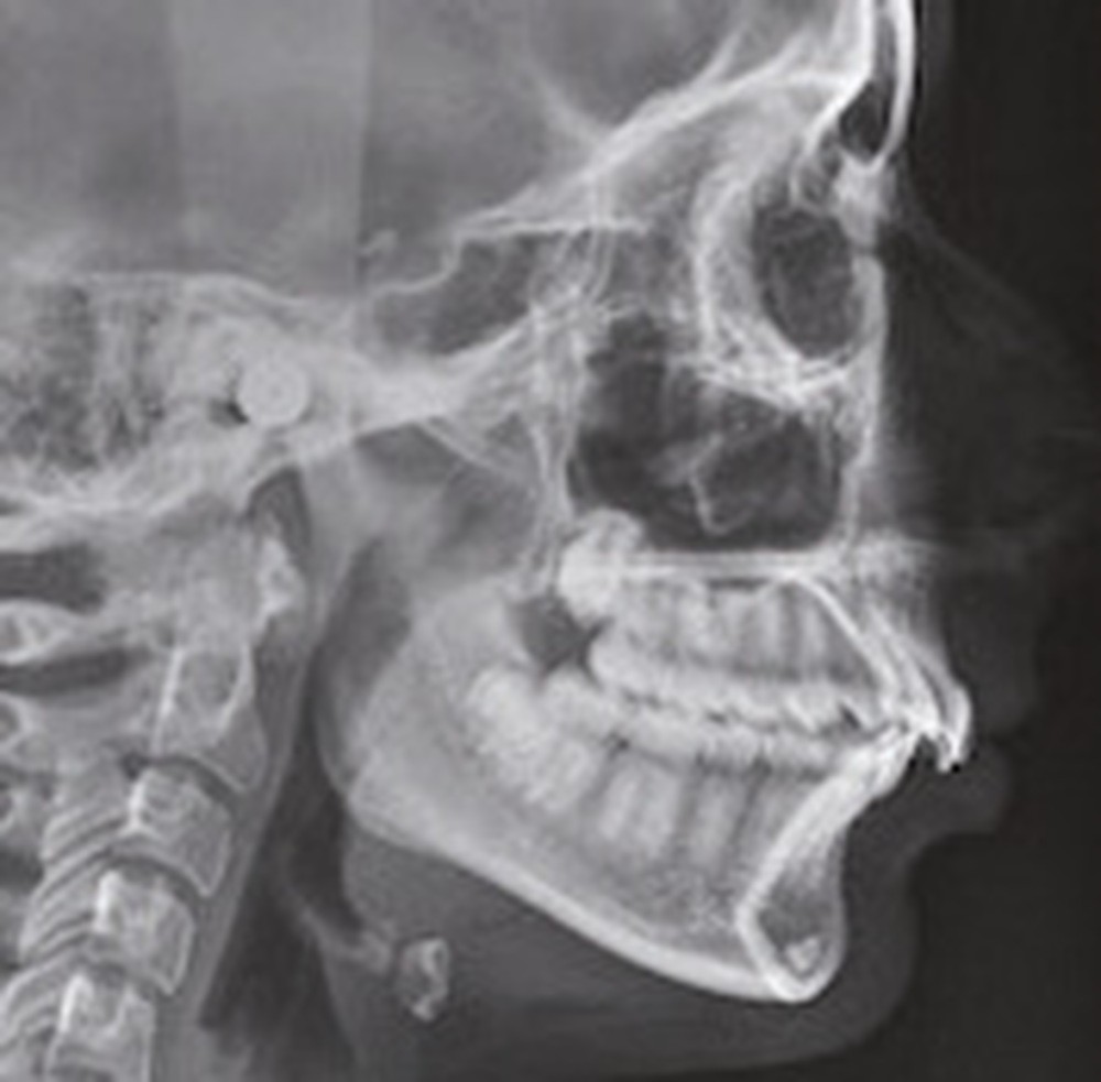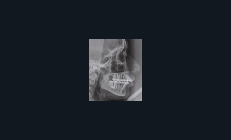 À la vue de l’examen radiographique, elle est au stade CS6 d’après la méthode de maturation vertébrale de Baccetti [1]. Elle présente une classe II squelettique de Ballard par rétrognathie mandibulaire avec un ANB de 9° et un AoBo de 9 mm sur un schéma facial normo-divergent. L’incisive mandibulaire est vestibulo-versée (IMPA = 114°). Le maxillaire est bien positionné. Elle présente de plus une dysharmonie dento-dentaire (DDD) antérieure par excès mandibulaire.