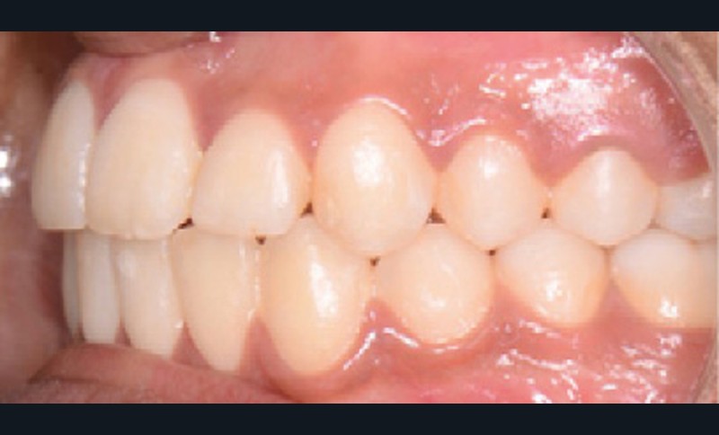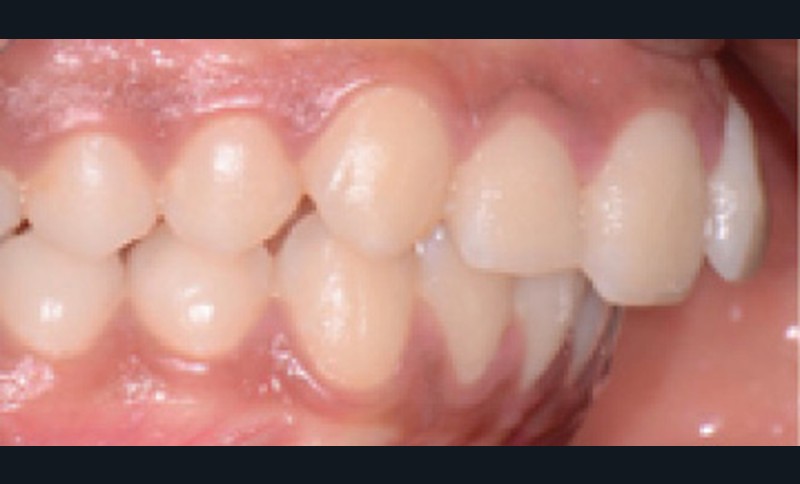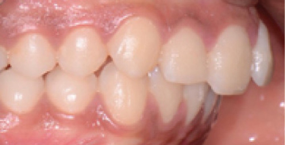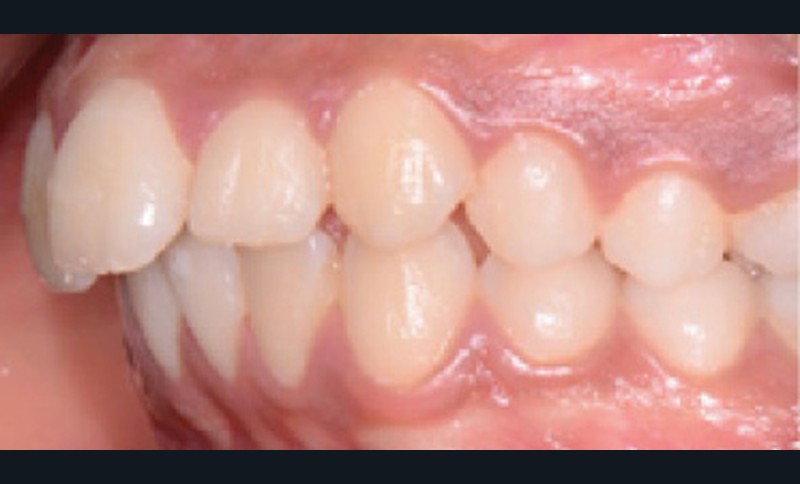 Sur le plan dentaire, elle présente une classe II d’Angle complète, une supraclusion de 4 mm et un surplomb de 6 mm ne correspondant pas au décalage de classe II molaire.