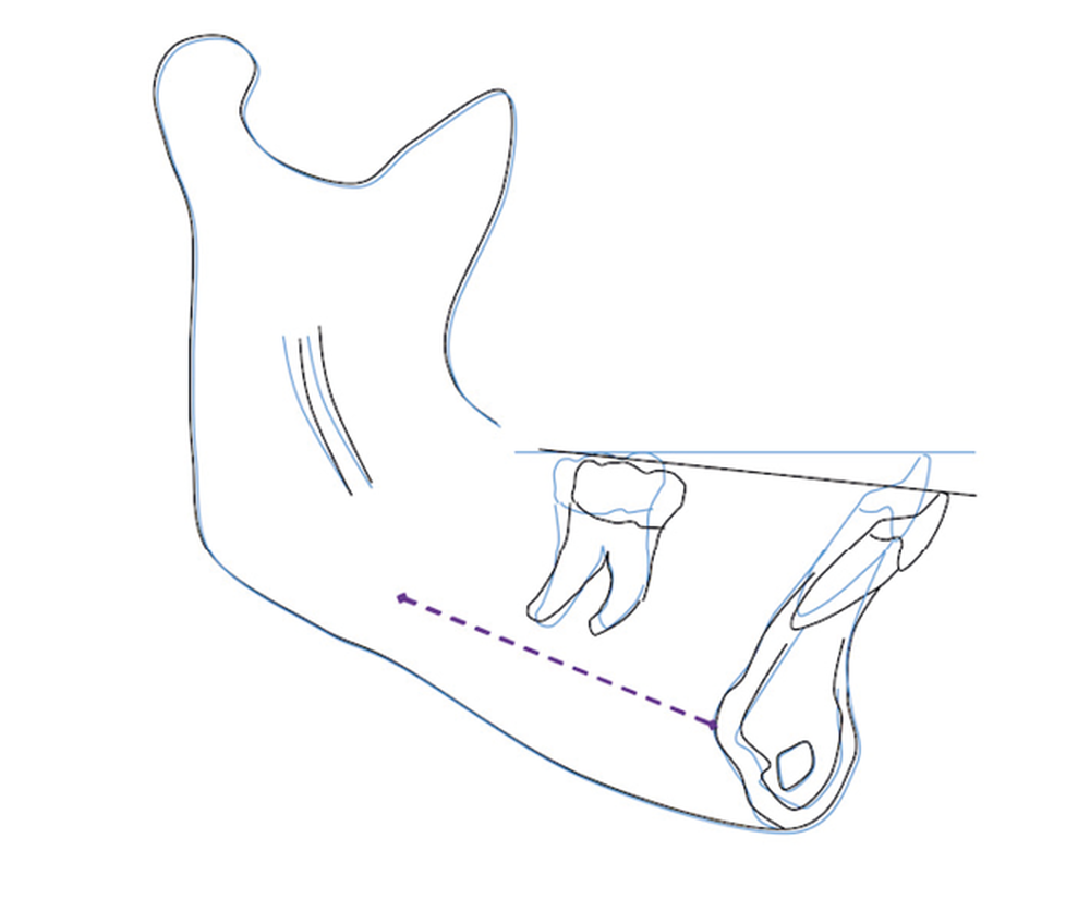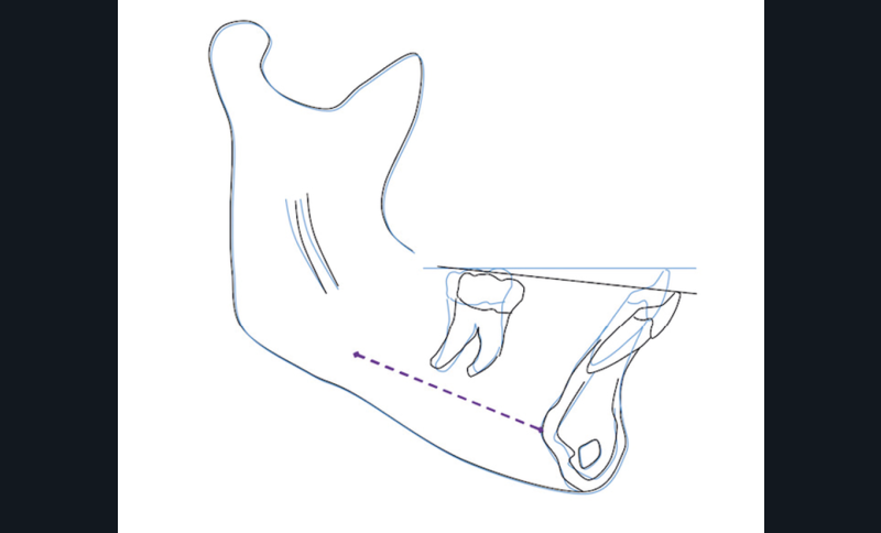 Le traitement de compromis n’étant pas une option chez cette patiente de 16 ans, nous proposons de réaliser un traitement orthodontico-chirurgical avec ostéotomie d’avancée mandibulaire après repositionnement de l’incisive inférieure.