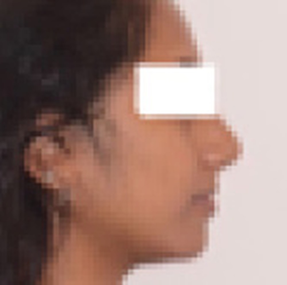 Son visage de face est équilibré et symétrique ; en revanche, au niveau de son profil elle présente une rétromandibulie avec un sillon labio-mentonnier marqué.