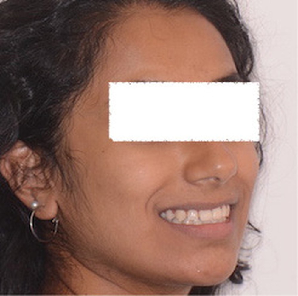 Le résultat de fin de traitement est satisfaisant. Le profil de la patiente est harmonisé. Une contention fixe mandibulaire et maxillaire de canine à canine est choisie.