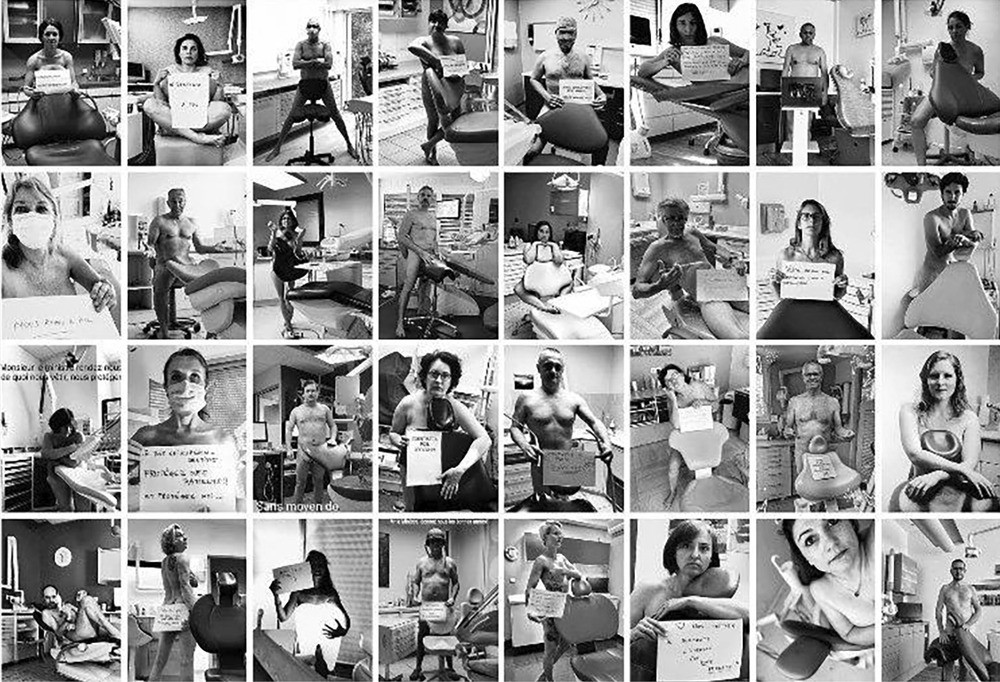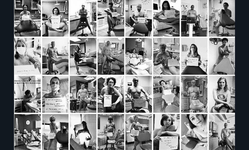 L’une de nos consœurs a eu la fabuleuse idée de mettre en image la situation telle que nous la percevions et allions la vivre en raison du manque d’équipements de protection individuelle (EPI) au moment de la sortie du confinement et de la réouverture de nos cabinets. Cet élan de nudité (https://youtu.be/ETD1r1PYgPM), suivi par de nombreuses consœurs et confrères, a eu un retentissement national puis international. Cette consœur a su utiliser les canaux de communication actuels fondés essentiellement sur l’image.