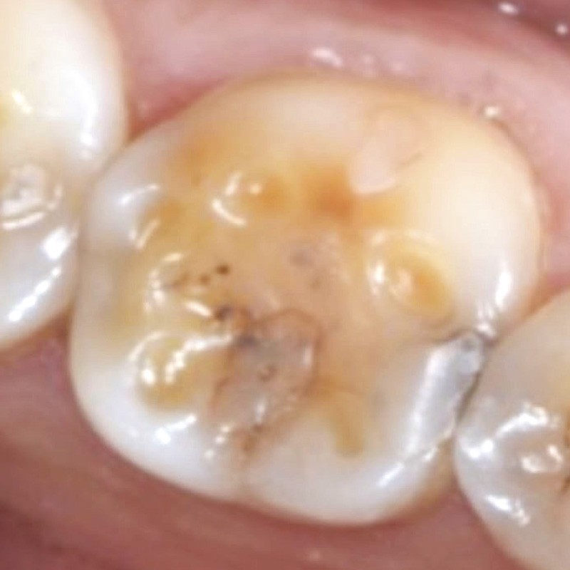 Des restaurations composites ont été successivement posées dans le passé afin de restaurer les pertes de substances érosives et palier ses sensibilités.