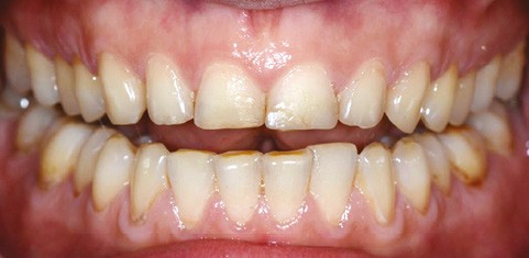 – impression de « dents courtes » : l’érosion a atteint le bord libre du secteur antérieur maxillaire (fig. 2) (groupe 3 de la Classification de Colon et Lasfargues) ;