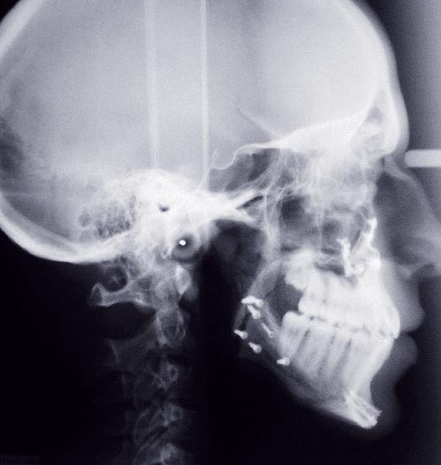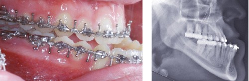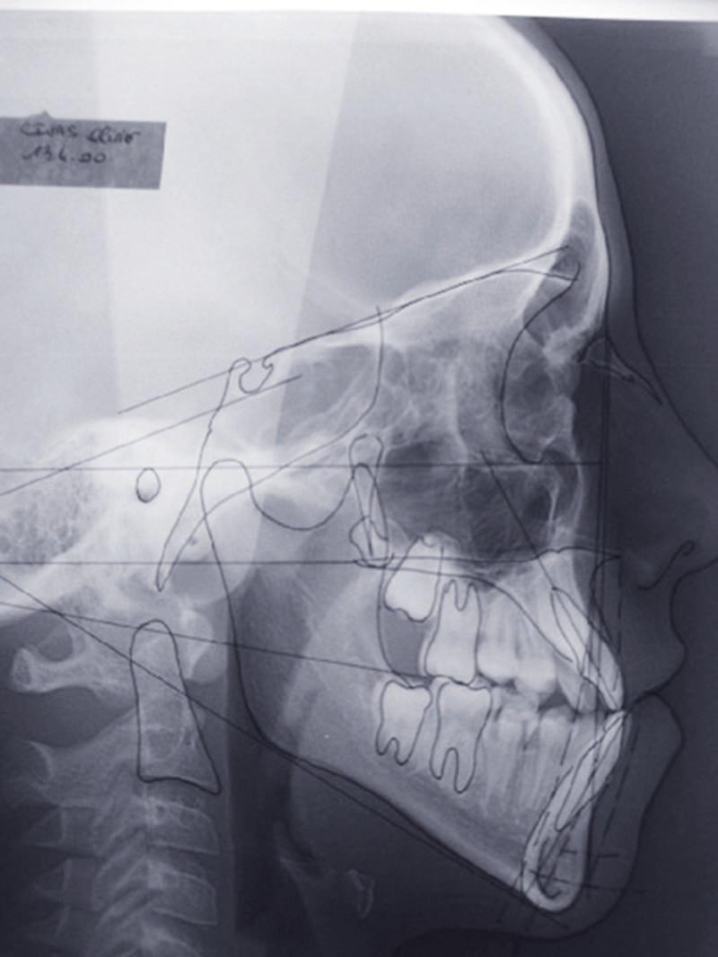 Les mouvements de décompensations sagittales et transversales sont réalisés à l’aide des tractions inter-arcades. La réévaluation céphalométrique et l’analyse des moulages confirment l’indication d’une chirurgie maxillaire de propulsion et d’une chirurgie mandibulaire par clivage bilatéral des branches montantes pour un recul mandibulaire modéré accompagné d’une génioplastie bidimensionnelle élargie qui rappelle la technique de Chin Wing.