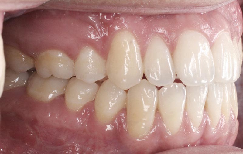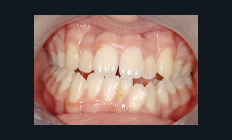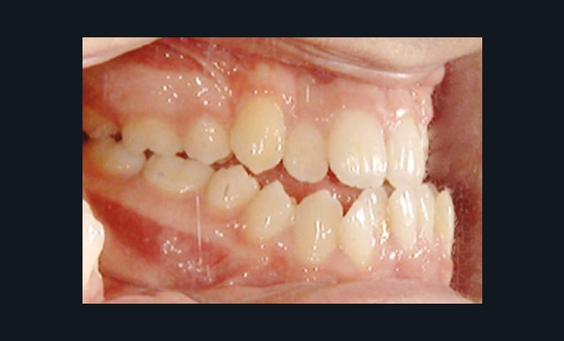 Olivier se présente à l’âge de 12 ans avec une classe III squelettique à prédominance mandibulaire, accompagnée d’une hyperdivergence et d’une endomaxillie responsable des inclusions des canines supérieures à forte obliquité. Une phase d’expansion est réalisée afin de permettre une augmentation du périmètre de l’arcade et la verticalisation des germes des canines. L’expansion permet en effet une normalisation transversale mais ne permet pas de réaliser la mise en place des canines. Les extractions des prémolaires sont alors effectuées et une préparation primaire de l’arcade supérieure par multi-attaches avec désinclusions et tractions des canines est réalisée.