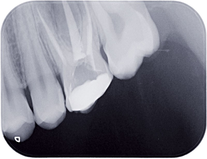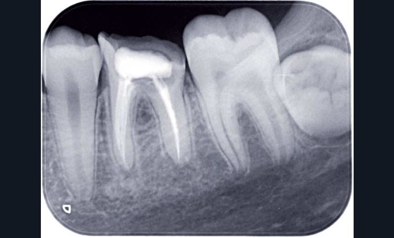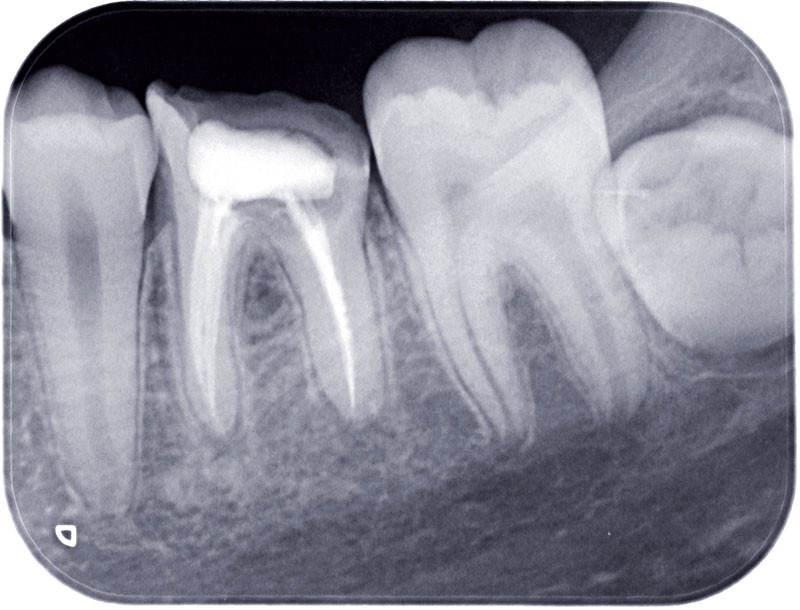 Le bilan rétro-alvéolaire révèle une atteinte du plancher radiculaire de 26 et 36 (fig. 10 et 11).