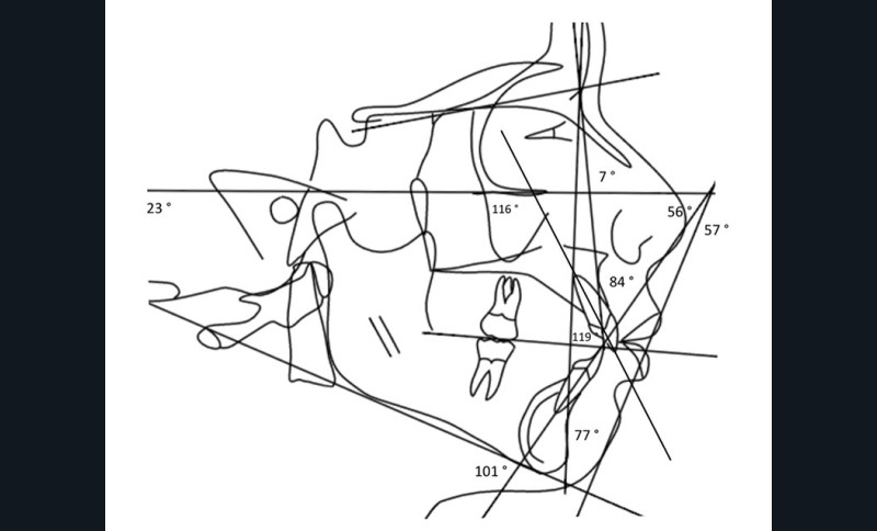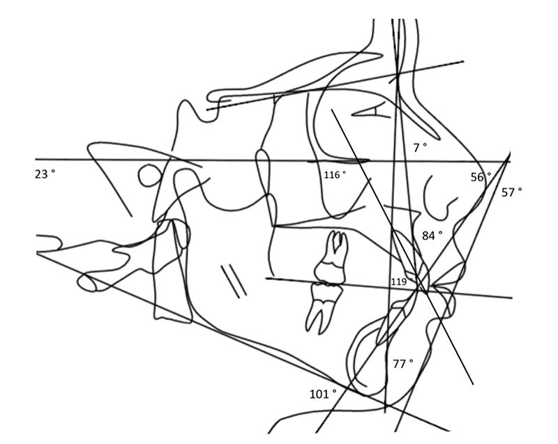 Le tracé céphalométrique confirme la dysmorphie squelettique ainsi que le contexte dento-alvéolaire (fig. 12).