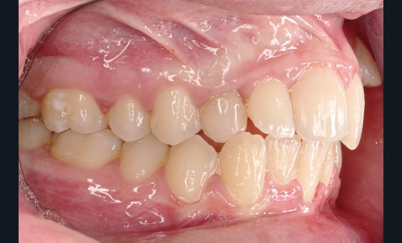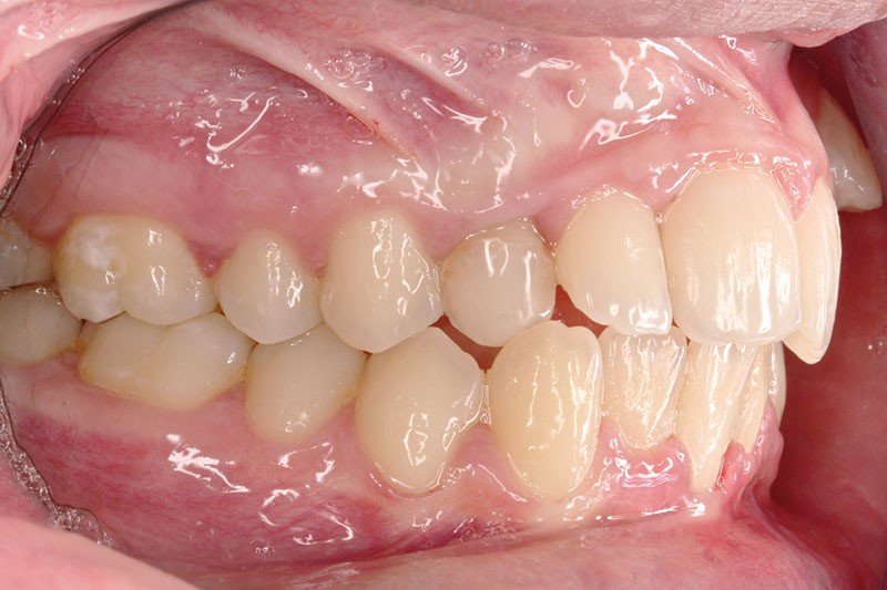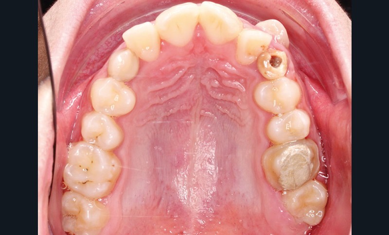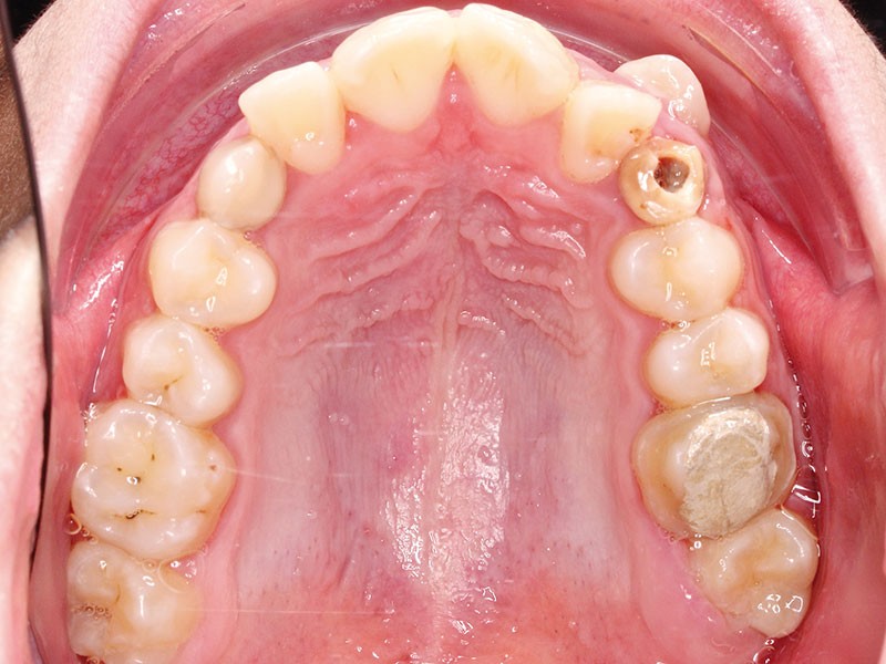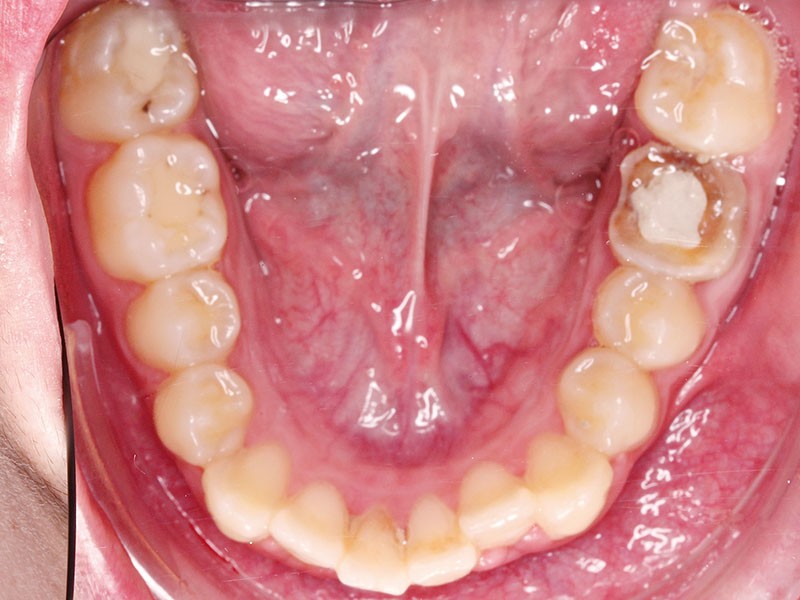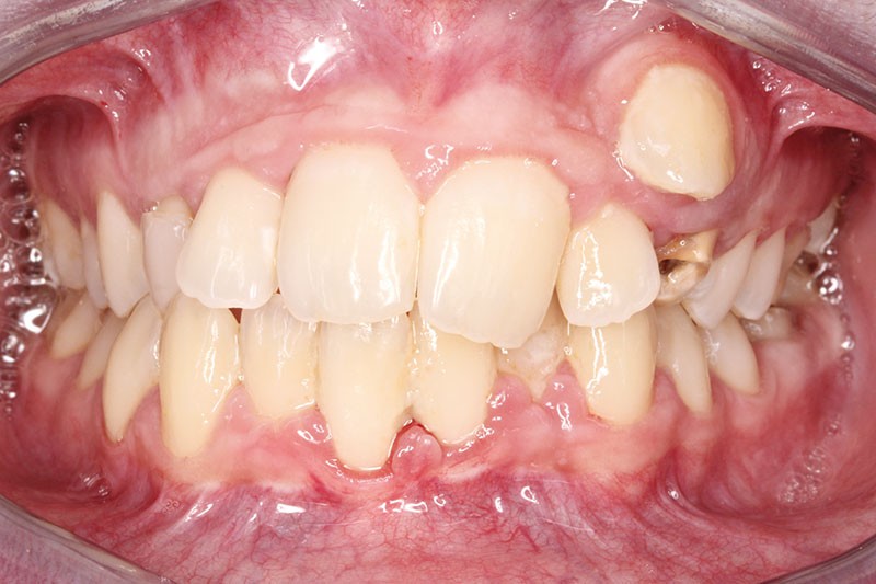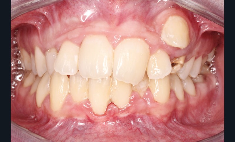 L’examen parodontal révèle une gingivite généralisée ainsi qu’un parodonte très fin et une absence de profondeur vestibulaire.