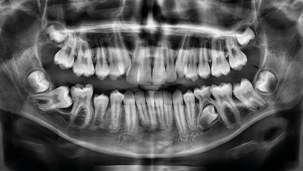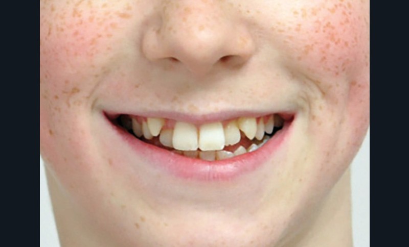 Julien nous consulte à l’âge de 11 ans et 4 mois pour des raisons essentiellement esthétiques, afin d’améliorer l’alignement de ses incisives maxillaires (fig. 1a-d) ; son chirurgien-dentiste l’a toutefois alerté sur un problème d’évolution des 35 et 47, dont l’inclusion a été mise en évidence lors d’un contrôle radiographique (fig. 1e).
