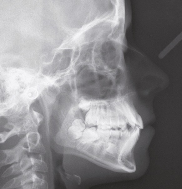 L’examen fonctionnel révèle une déglutition dysfonctionnelle qui n’est pas associée à des troubles ventilatoires ni à des problèmes ORL. Cela explique sans doute que l’examen téléradiographique soit quasi normal, puisque la croissance est harmonieuse à la fois dans la dimension sagittale et dans la dimension verticale (fig. 1f).