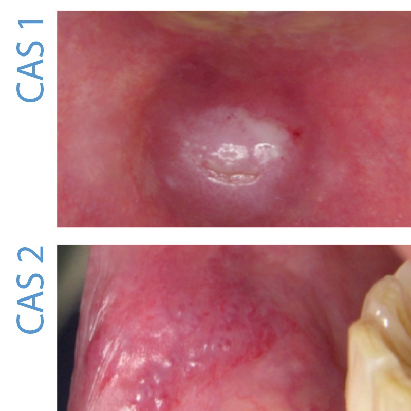 Interrogatoire. Il précisait que la lésion était apparue à la suite d’une morsure. La lésion augmentait progressivement de volume. Elle gênait le patient qui la mordait fréquemment.