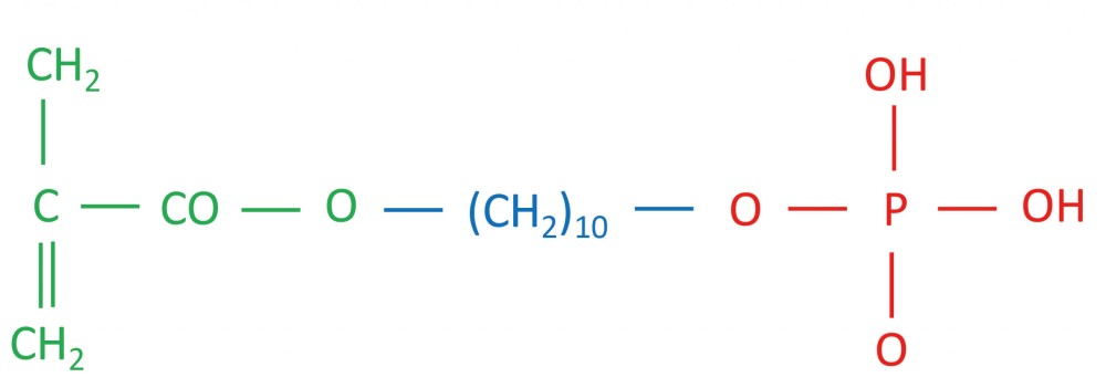 Le 10-MDP, comme la majorité des monomères fonctionnels, est composé de trois parties (fig. 10) :