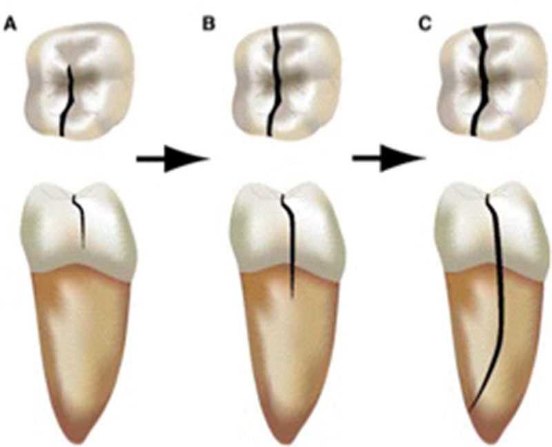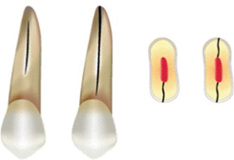 Les fractures dentaires longitudinales sont classées en cinq catégories [3] (fig. 1) :