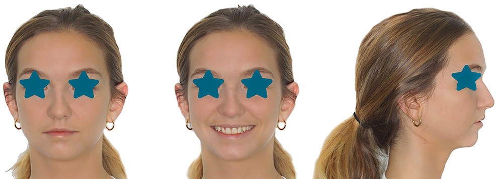 Cette patiente de 20 ans se présente en consultation pour réaliser un bilan orthodontique. Elle n’a jamais été traitée orthodontiquement et souhaite améliorer l’esthétique de son sourire. L’anamnèse rapporte un antécédent d’avulsion des 3es molaires.
