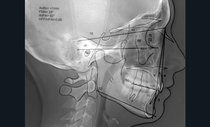 - une classe I squelettique (angle ANB = 3°) ;