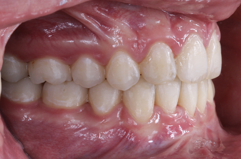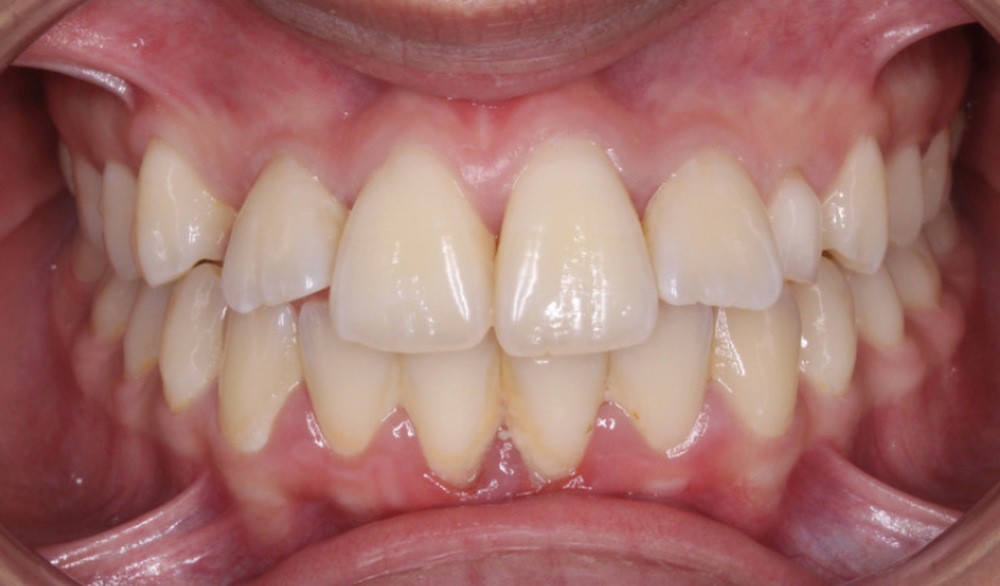 Le traitement a permis d’améliorer l’environnement parodontal et de mettre en place les canines incluses tout en préservant au maximum les incisives centrales déjà résorbées et en assurant un résultat esthétique pour la patiente.