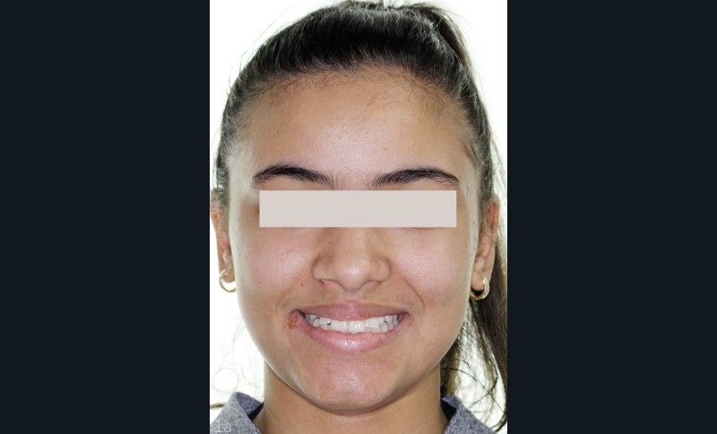 La patiente âgée de 14 ans et 6 mois le jour du bilan se présente en consultation pour une gêne esthétique au niveau de ses dents maxillaires : « trop en avant et avec des espaces ».