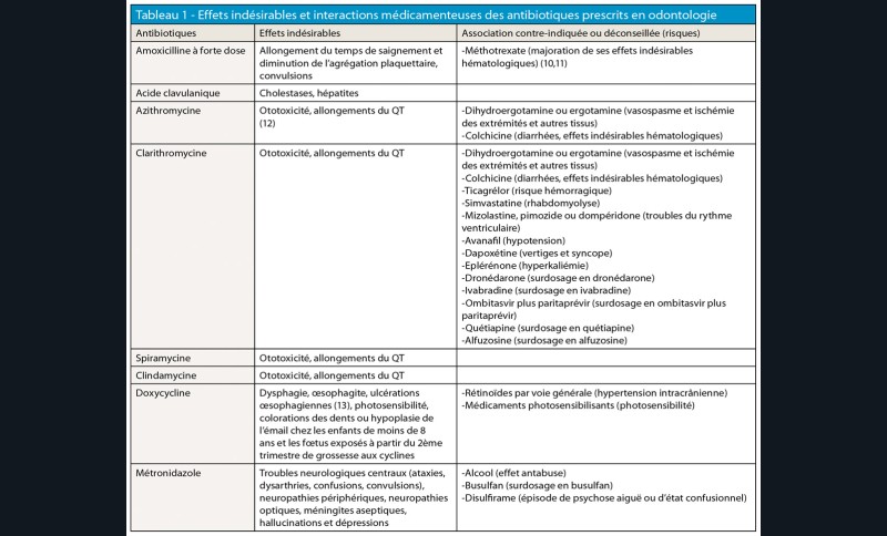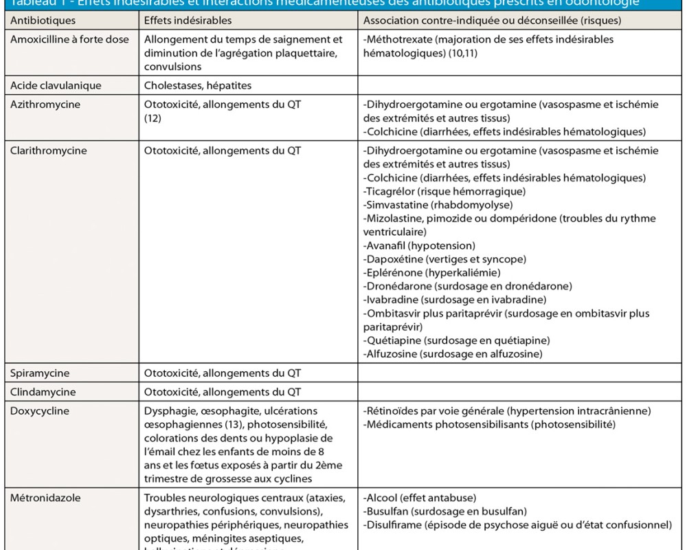Leurs principaux effets indésirables et interactions médicamenteuses sont présentés dans le tableau 1.