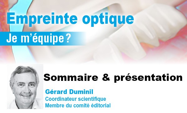 Popularisée par le système Cerec depuis maintenant plusieurs années, la mise en œuvre de l’empreinte optique semblait être limitée à la réalisation d’éléments unitaires ou de faible étendue usinés au cabinet. L’offre matérielle s’est grandement étendue et la collaboration avec le laboratoire de prothèse pour la conception et l’élaboration des prothèses en a grandement augmenté les applications. Le projet de ce numéro spécial est d’aborder l’empreinte optique sous un autre angle et de vous exposer l’étendue actuelle de ses indications.