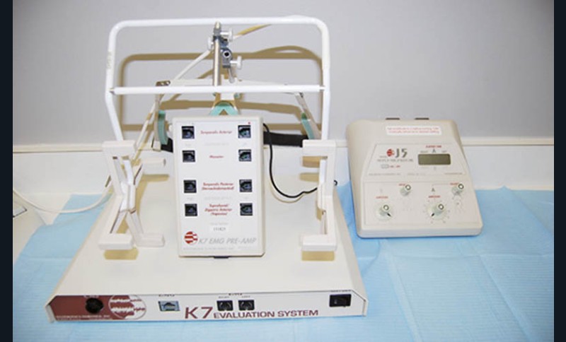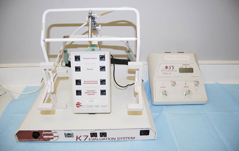 Le système est composé de deux appareils (le J5® et le K7®) qui permettent de réaliser une neurostimulation transcutanée (TENS), On couple l’électromyographie de surface l’enregistrement électronique des mouvements mandibulaires, avec une série de tests diagnostiques à l’aide du K7® (fig. 1).