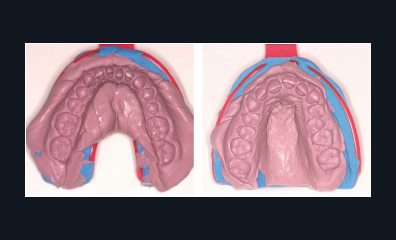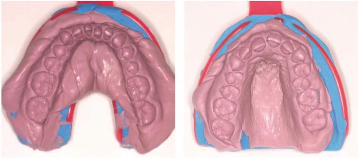 La prise d’empreinte est le premier maillon de la chaîne qui permettra d’obtenir le moulage. Elle est conventionnellement réalisée à l’alginate si la coulée peut intervenir rapidement ou à défaut au silicone (fig. 1) qui permet de différer la coulée sans trop de déformations. Les arcades dentaires doivent être propres et détartrées.