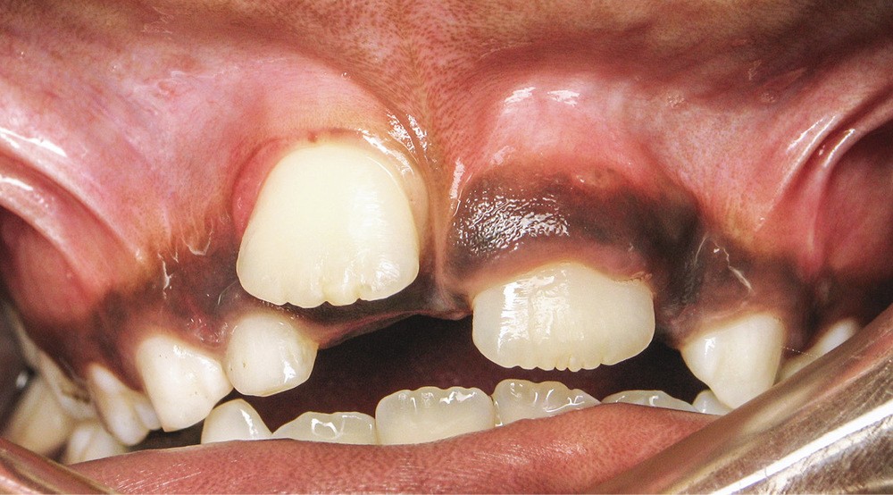 Les adolescents peuvent présenter une parodontite localisée aux incisives et premières molaires (fig. 2). Certains des sujets atteints de cette parodontite précoce et agressive peuvent avoir présenté des signes de perte osseuse sur les dents temporaires. Cette observation constitue donc un signe d’appel d’un enfant à risque de parodontite localisée sur les premières molaires et incisives permanentes, parodontite…