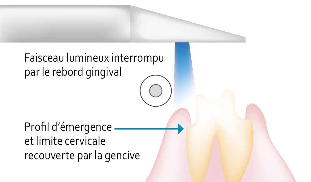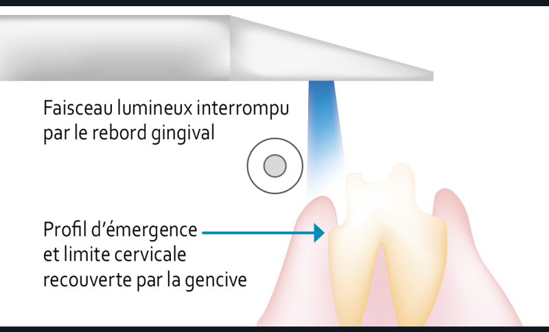 A l’instar de l’empreinte analogique et de la déflection mécanique des tissus mous par le silicone lors de l’insertion, l’empreinte optique n’enregistre que la forme présente dans l’axe de ses faisceaux lumineux.