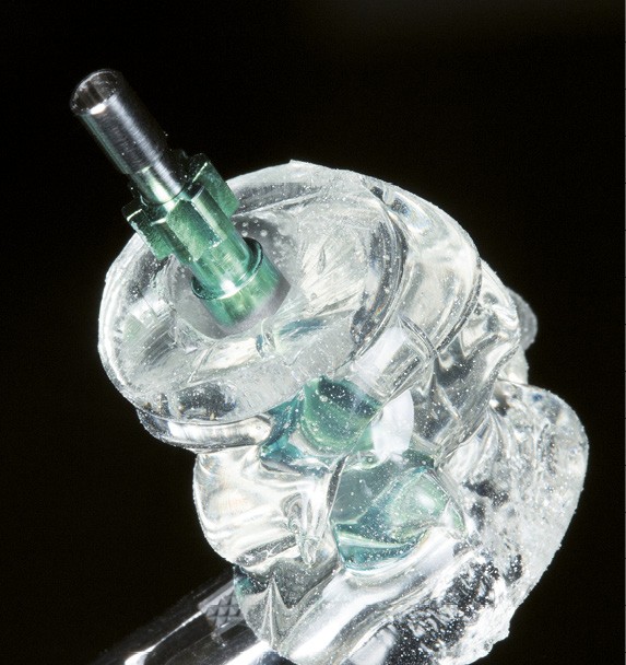 Cet article a pour but de décrire une méthode utilisant un silicone translucide (Exaclear®, GC) et un composite fluide de restauration (G-aenial Universal Injectable©, GC) (fig. 1). L’objectif est de palier les éventuels écueils qui nuisent à la qualité de l’empreinte comme une coulée incomplète par l’utilisation d’une résine méthacrylate avec des bulles ou des manques, une photopolymérisation incomplète en raison de l’emploi d’une résine composite fluide ou la rotation du transfert dans le silicone, voire de la résine autour du transfert du fait de sa surface lisse et de sa forme cylindrique.