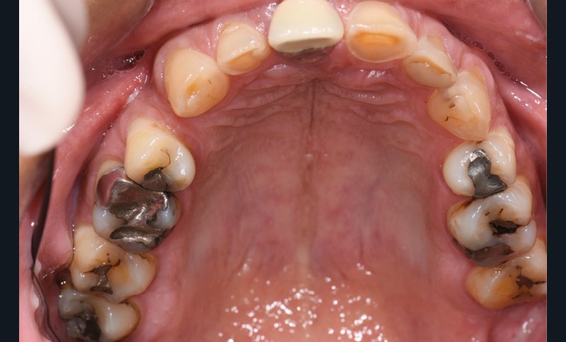 Les empreintes sont effectuées, l’arc facial enregistré, l’ensemble monté sur articulateur. Un protocole photographique complet est réalisé afin d’établir un projet virtuel et de communiquer le plus d’éléments possible au prothésiste.