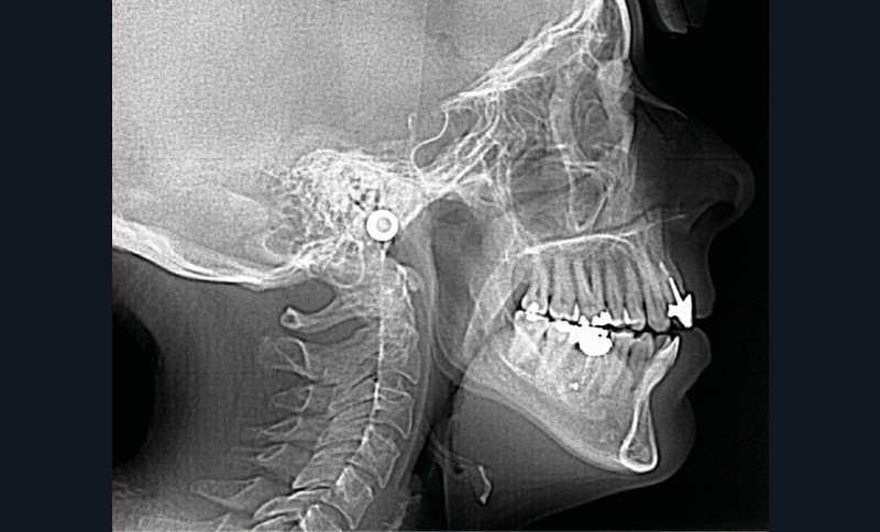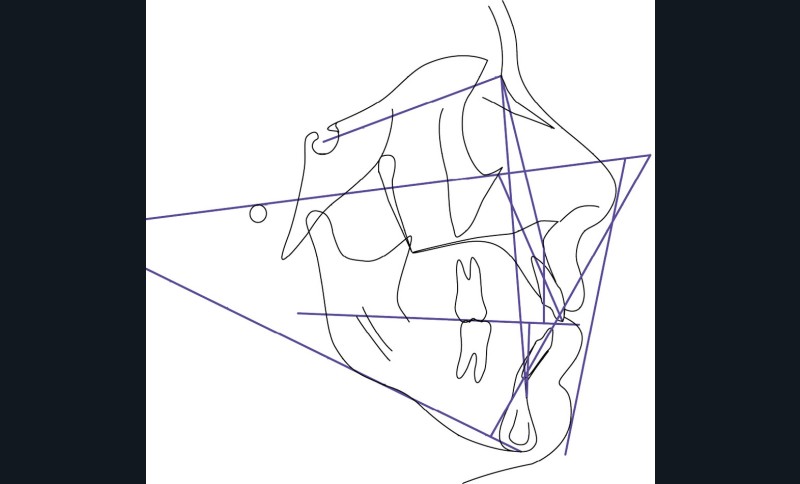 L’analyse endobuccale et l’étude céphalométrique (fig. 2, tableau 1) confirment le diagnostic de classe II squelettique hyperdivergente avec une classe II molaire et canine bilatérale, associée à un encombrement, à une dysharmonie du sens transversal par endoalvéolie maxillaire, et une béance antérieure par infra-alvéolie incisive maxillaire dans un contexte dysfonctionnel de la musculature péri-labiale et mentonnière.