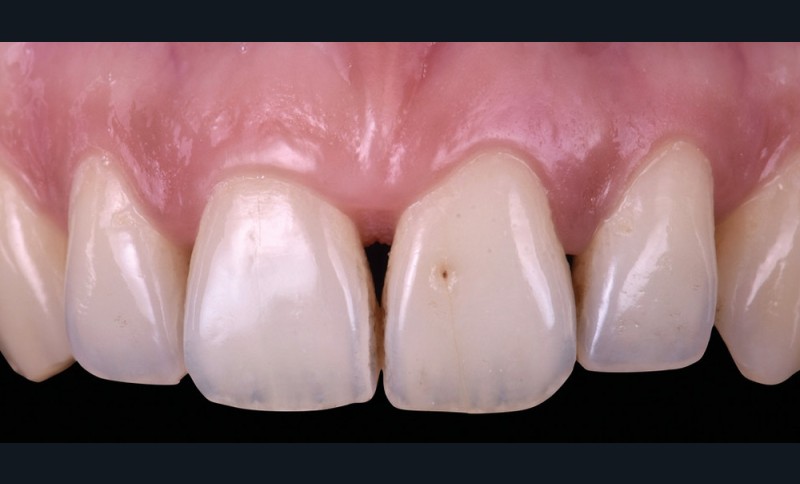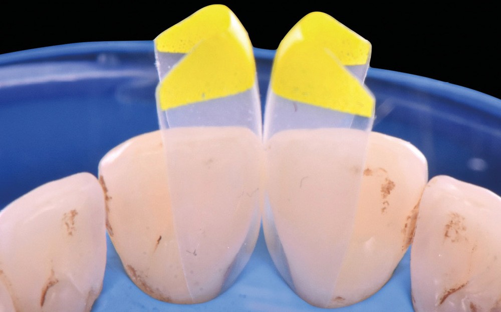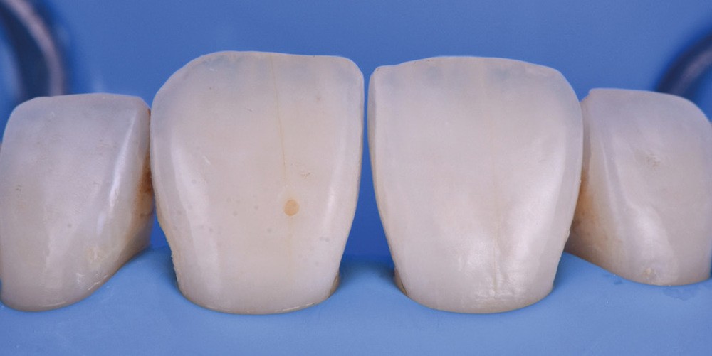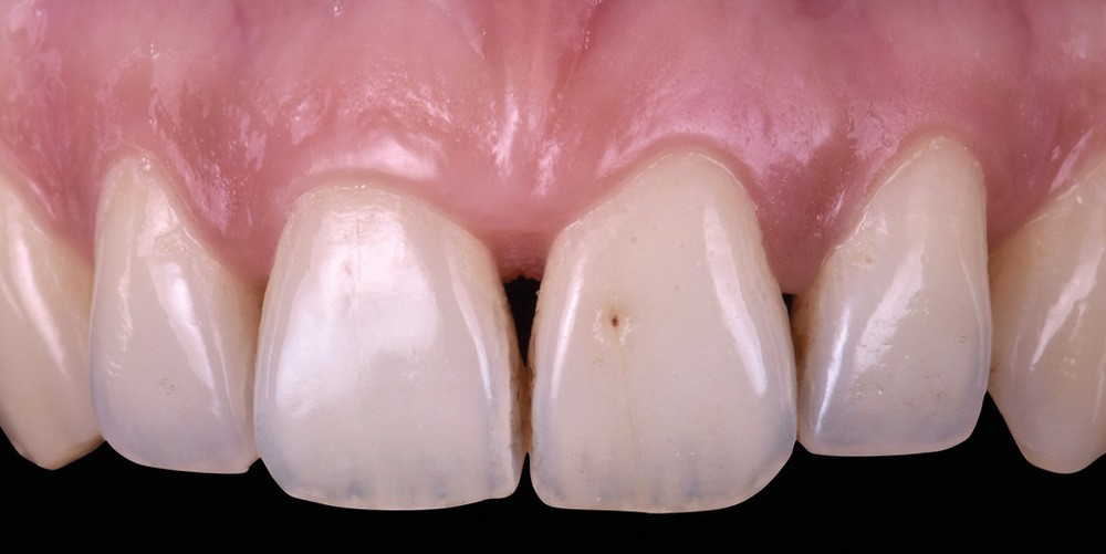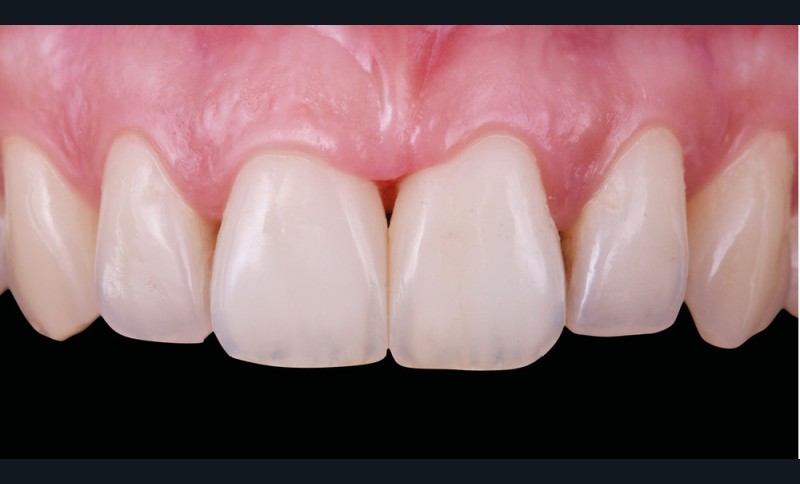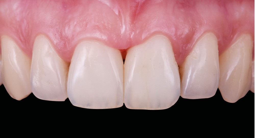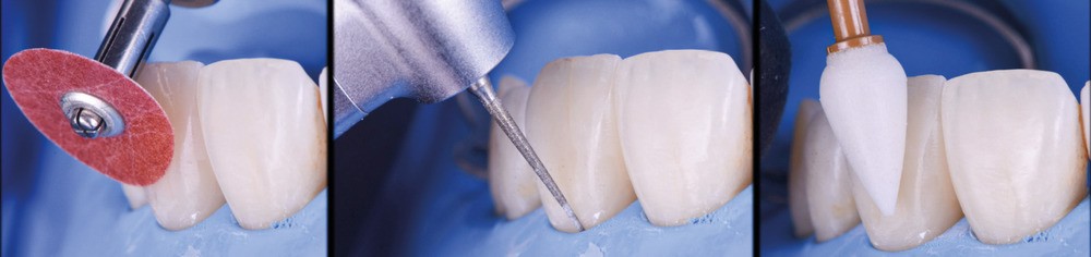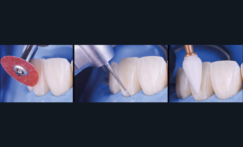 Si les techniques de reconstruction papillaire présentent des résultats non prédictibles, les facettes céramiques peuvent être une réponse fiable au problème des triangles noirs mais imposent une préparation plus marquée. En effet, pour obtenir un profil d’émergence adéquat et une bonne fermeture de l’espace interproximal, il faut préparer les surfaces de contact et venir chercher la ligne de transition palatine, obligeant à retirer une quantité de tissu sain non négligeable.