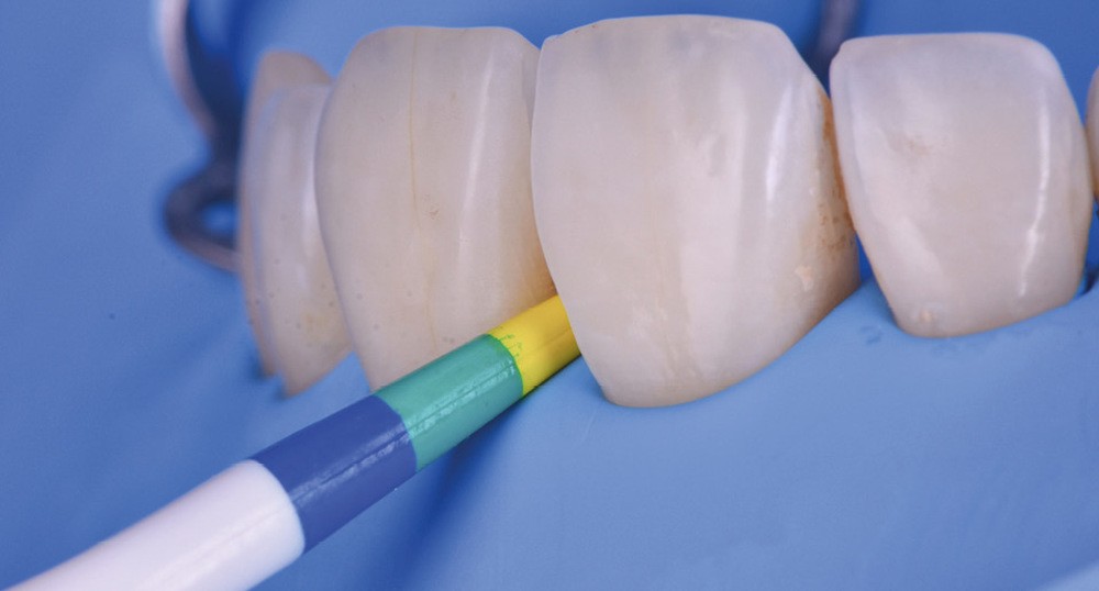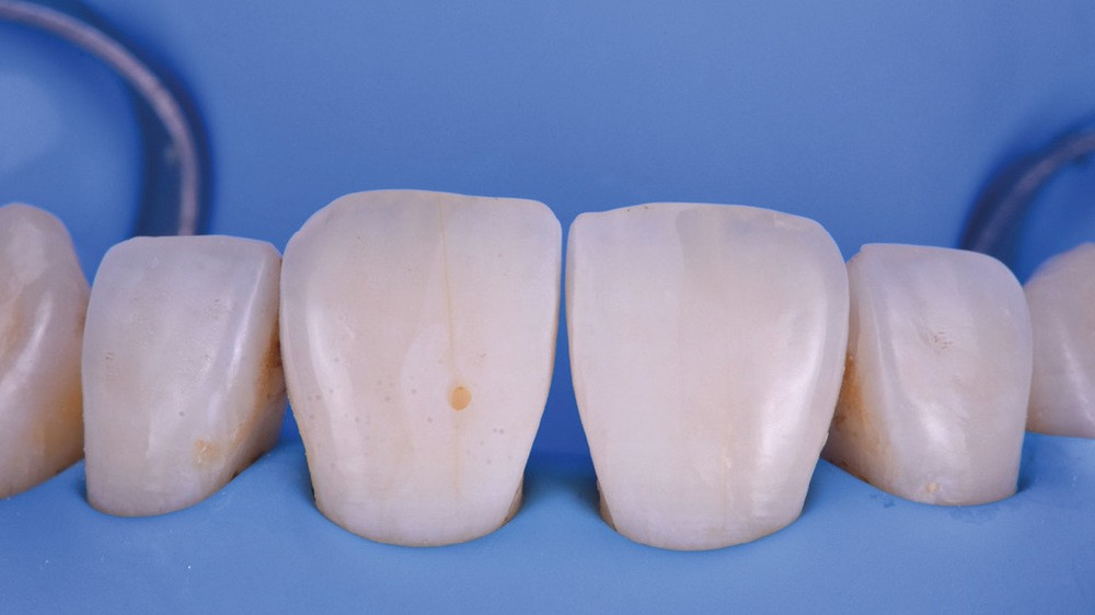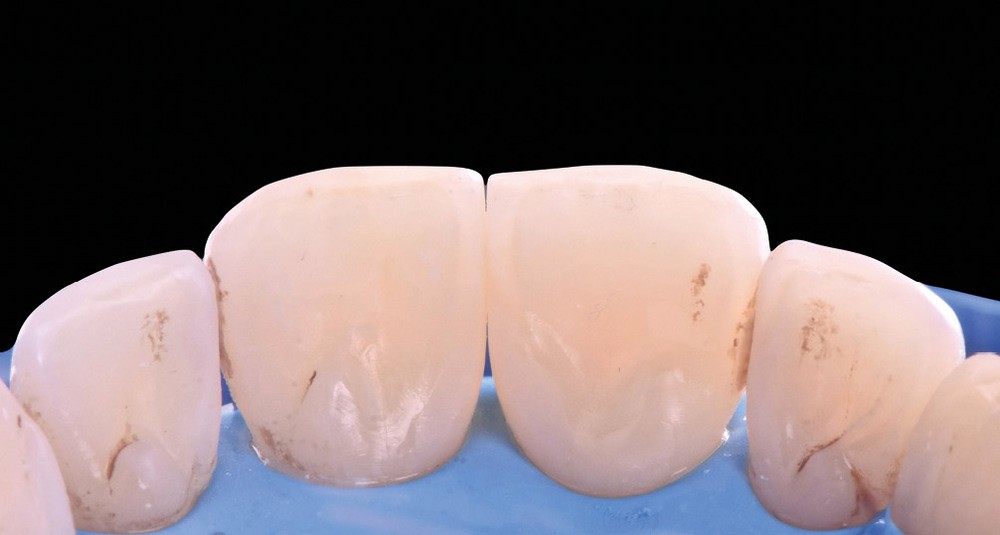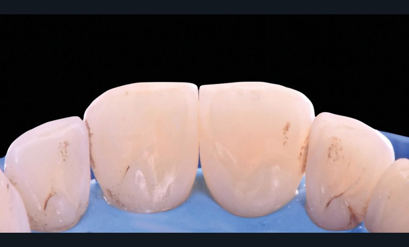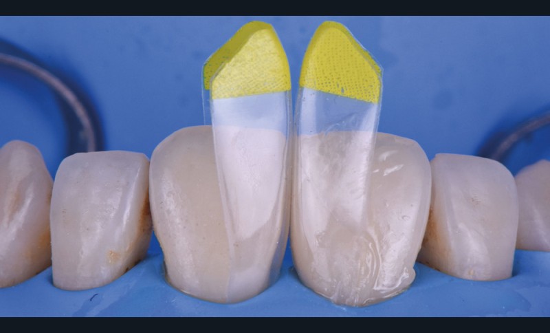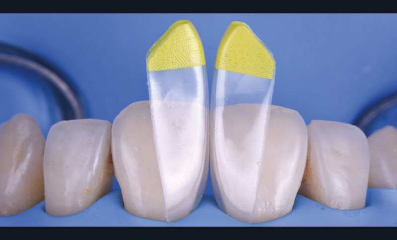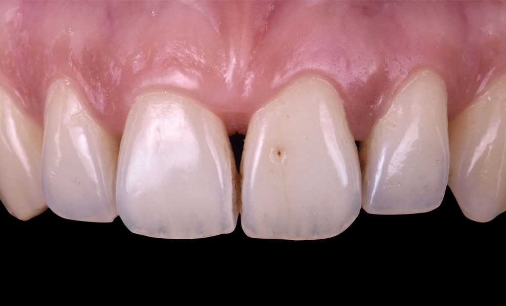 Si les techniques de reconstruction papillaire présentent des résultats non prédictibles, les facettes céramiques peuvent être une réponse fiable au problème des triangles noirs mais imposent une préparation plus marquée. En effet, pour obtenir un profil d’émergence adéquat et une bonne fermeture de l’espace interproximal, il faut préparer les surfaces de contact et venir chercher la ligne de transition palatine, obligeant à retirer une quantité de tissu sain non négligeable.