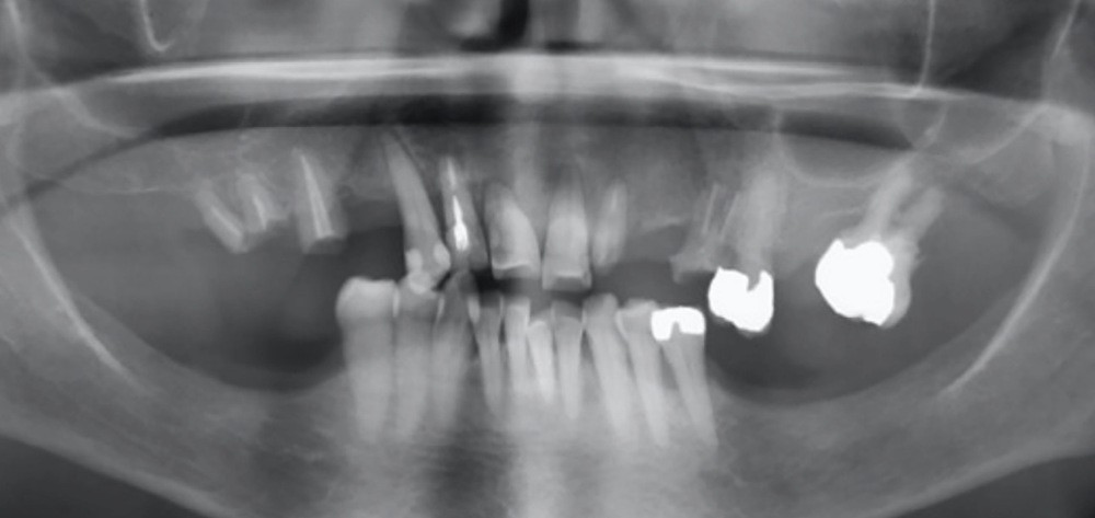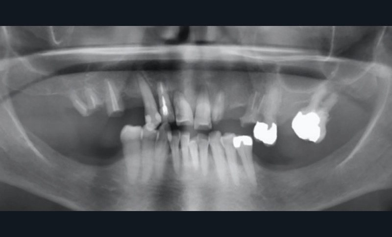 Le pronostic dentaire général est mauvais [2], et la conservation des dents résiduelles n’est donc pas retenue (fig. 2).