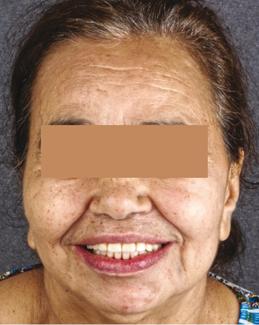 Madame B. se présente à la consultation avec une demande esthétique fonctionnelle suite à des pertes dentaires multiples non compensées. La patiente de 71 ans se révèle être en bonne santé générale (ASA1), non fumeuse, sans traitement chronique ni antécédents médico-chirurgicaux.