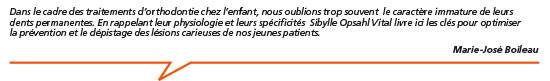 Dans l’approche médicale contemporaine de la dentisterie, le respect des dents permanentes est un impératif et toutes les stratégies préventives et thérapeutiques doivent être mises en œuvre dans ce sens, et ce, à plus forte raison, lorsqu’elles sont jeunes et immatures. C’est pourquoi, la dent immature, indemne de pathologie, doit être au centre des stratégies de prévention primaire, c’est-à-dire l’ensemble des mesures qui visent à éviter le développement de lésions carieuses. Elle doit également faire l’objet des méthodes de prévention secondaire, c’est-à-dire d’interception des lésions initiales. Face à la pathologie carieuse ou traumatique, l’immaturité de structure oblige à reconsidérer les thérapeutiques conservatrices en fonction du stade de formation radiculaire et apicale. Les traitements portent en effet sur des structures en évolution et doivent donc permettre aux structures dentaires et alvéolaires de parachever leur édification. Si l’immaturité des tissus constitutifs de la dent la rend plus vulnérable face à la maladie carieuse, cette même immaturité rend possible des thérapeutiques de prévention et de régénération en dentisterie conservatrice et en traumatologie, thérapeutiques qui ne seront plus efficientes une fois la dent mature.
