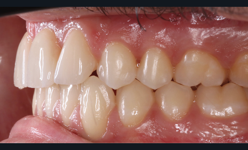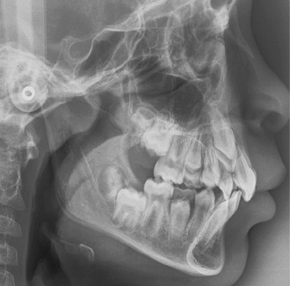 Nous optons pour une fermeture des espaces d’extraction (12/22 en place de 11/21, 13/23 en place de 12/22). Cette solution se soldant par une classe II molaire thérapeutique en fin de traitement limite les corrections à apporter dans les secteurs latéraux, rendant le traitement moins chronophage qu’un traitement ayant cherché à solliciter la croissance mandibulaire et/ou à distaler les secteurs latéraux maxillaires. L’inconvénient principal de ce choix est la gestion esthétique post thérapeutique des substitutions au niveau prothétique et parodontal.