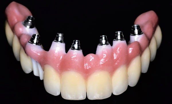 En cas de réalisation prothétique fixe sur implants, nous sommes confrontés à des difficultés supplémentaires d’ordre phonétique par la gestion des éléments intermédiaires du bridge et le compromis nécessaire entre le passage impératif et simple des moyens d’hygiène, et la limitation des fuites d’air lors de la prononciation de certains phonèmes (en particulier F et V).