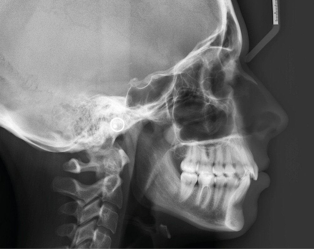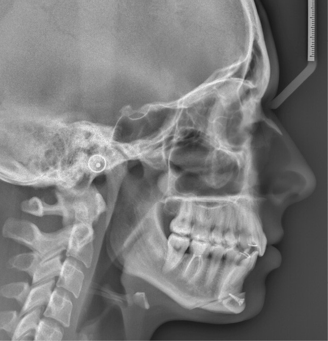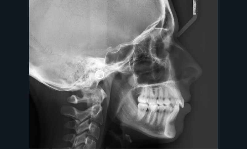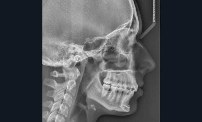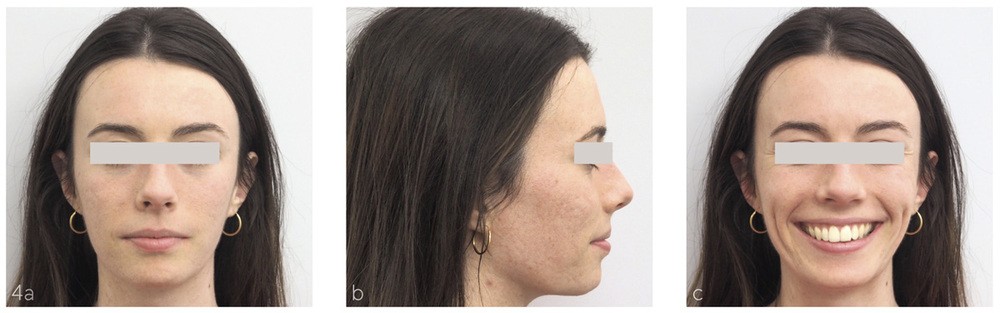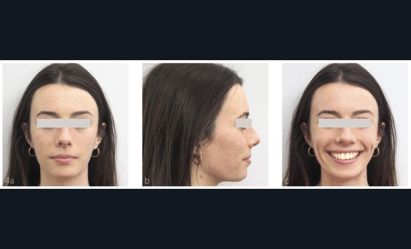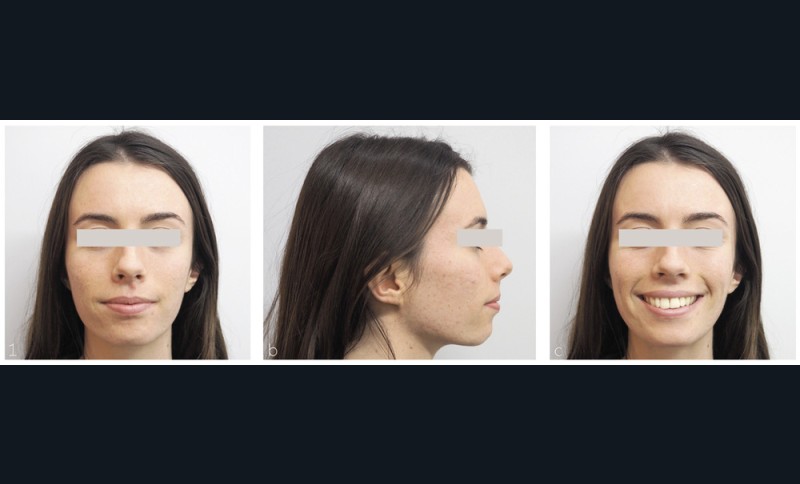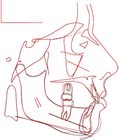 Cette dernière montre un schéma squelettique de Classe I et une typologie verticale normodivergente. Les rapports incisifs sont normaux et l’épaisseur des tissus mentonniers est insuffisante pour obtenir la fermeture buccale sans contraction. La symphyse est fine et l’incisive est centrée sur celle-ci.