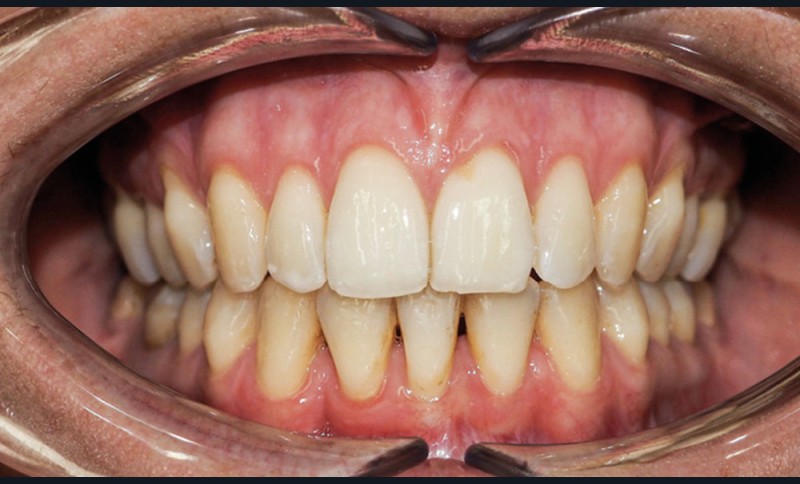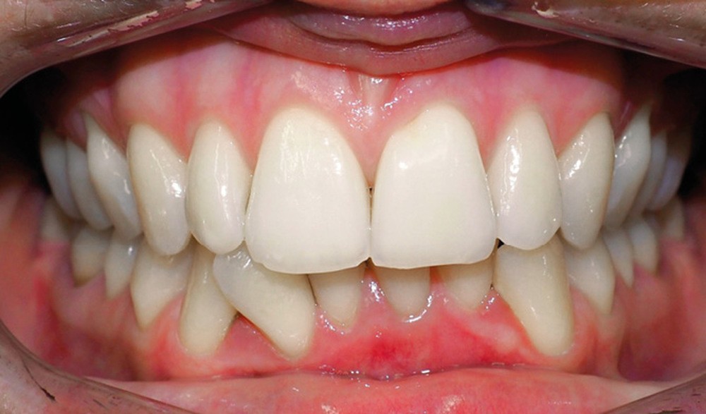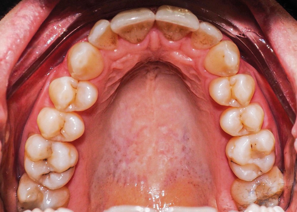 Les incisives maxillaires sont de forme triangulaire [1] et l’indice de Bolton est de 97 % qui traduit la présence d’une DDD par excès mandibulaire.