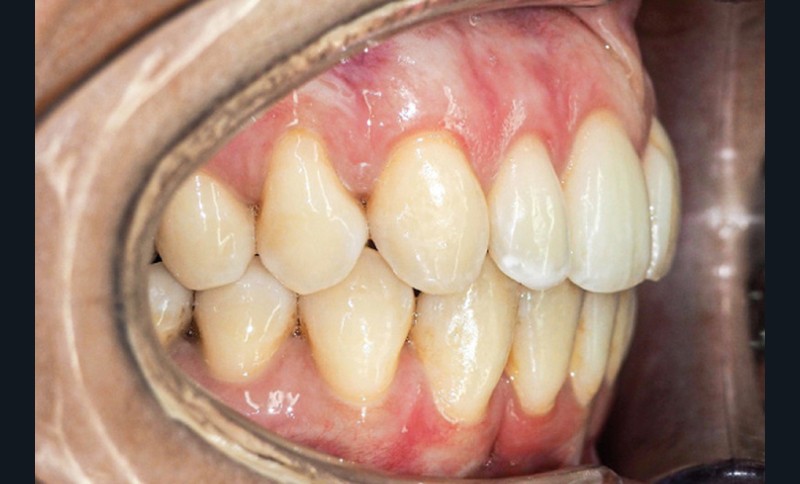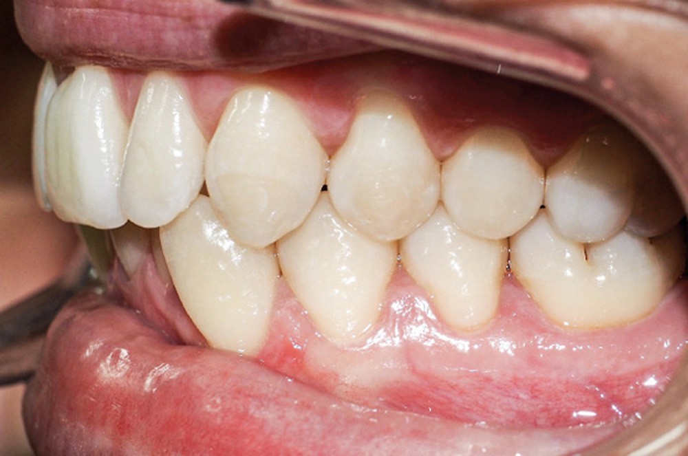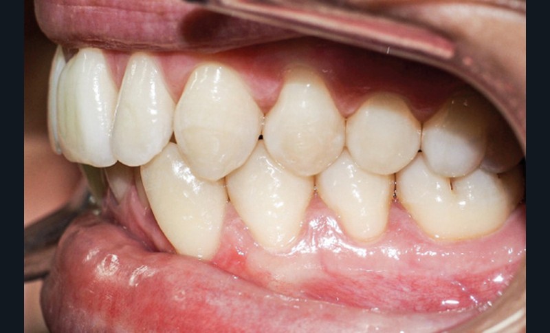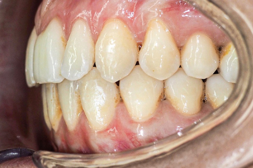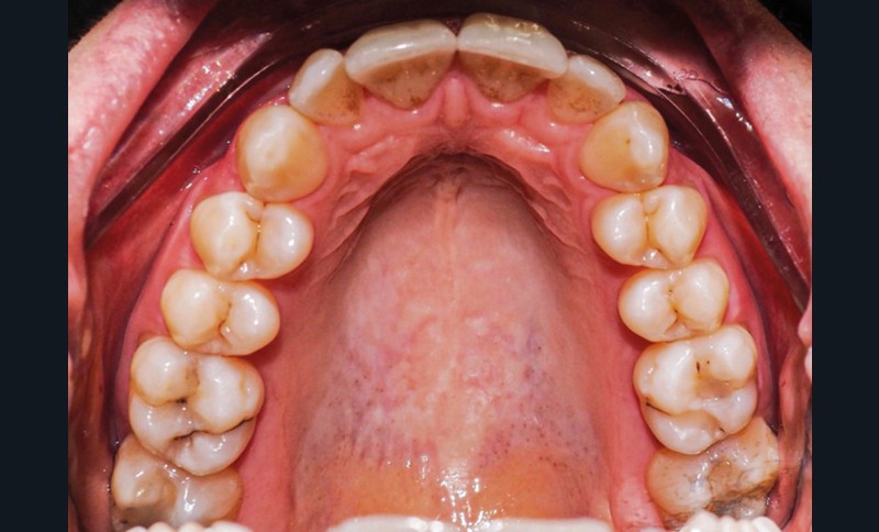 En occlusion, on note une relation de Classe I molaire bilatérale avec un surplomb normal et une supraclusion. Les médianes incisives sont concordantes.