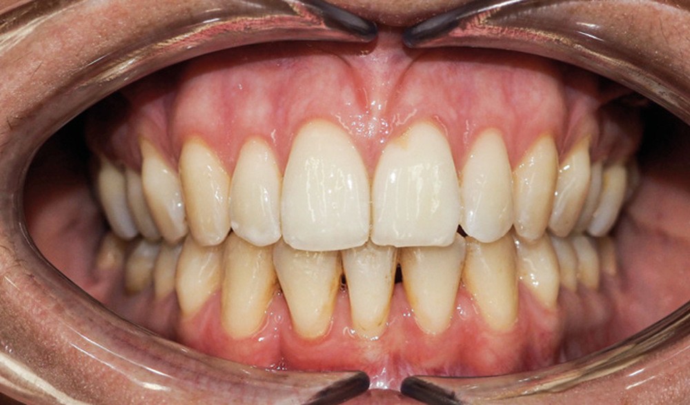 Le choix final s’est donc porté sur l’extraction de la 31 avec stripping maxillaire. Ce stripping avait deux objectifs : corriger la DDD créée par l’extraction de 31 (indice de Bolton de 90,8 % post extraction, soit une DDD par excès maxillaire) et éviter l’apparition de triangles noirs entre les incisives maxillaires liée à leur forme triangulaire [1]. Le set-up réalisé en début de traitement lingual est un avantage car il permet de prévisualiser la correction de la DDD créée et la quantité de stripping nécessaire.