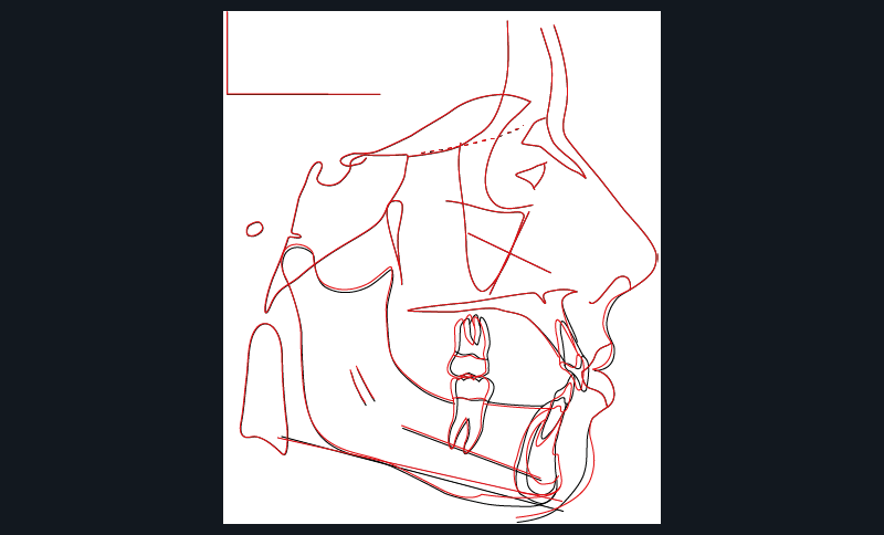 La superposition des structures anatomiques nous montre une ingression de l’incisive mandibulaire et un maintien de l’axe ainsi qu’une distalisation en gression de l’incisive maxillaire.