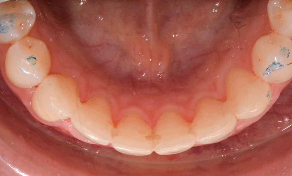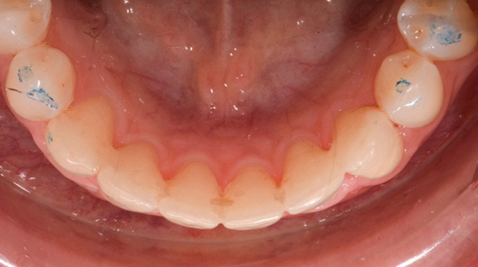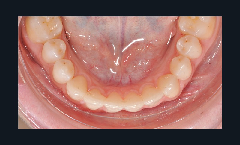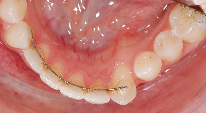 Par exemple, le retraitement d’un patient atteint d’un « Syndrome du fil » [2, 3], au vu de l’état des connaissances imparfaites de l’étiologie de cette situation, méritera une réflexion pour trouver un système de confiance. Une fibre collée est l’une des solutions sécurisantes (fig. 1). Mais, si la langue n’est pas stabilisée au repos comme en fonction, un dispositif amovible type Spring Retainer sera préférable.
