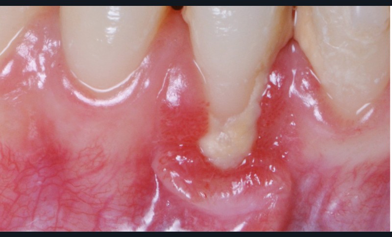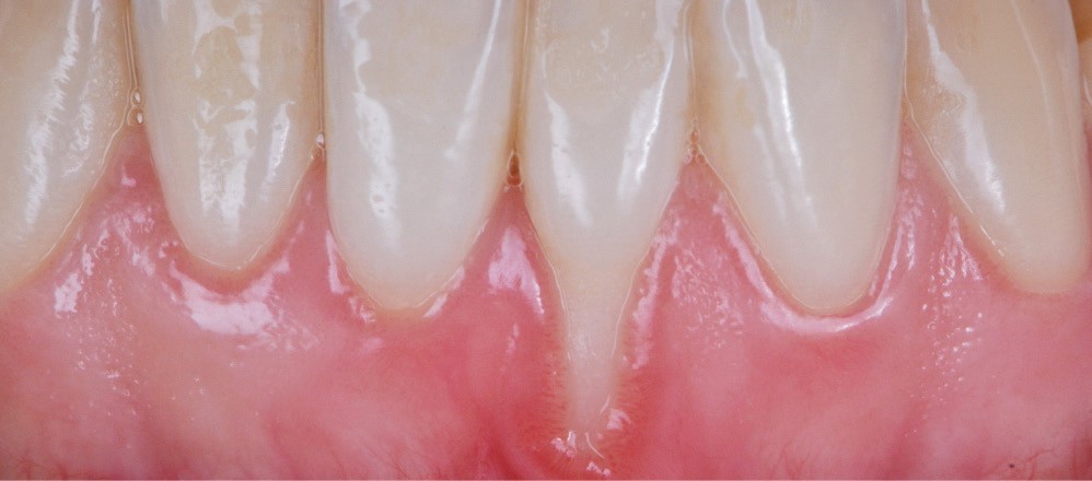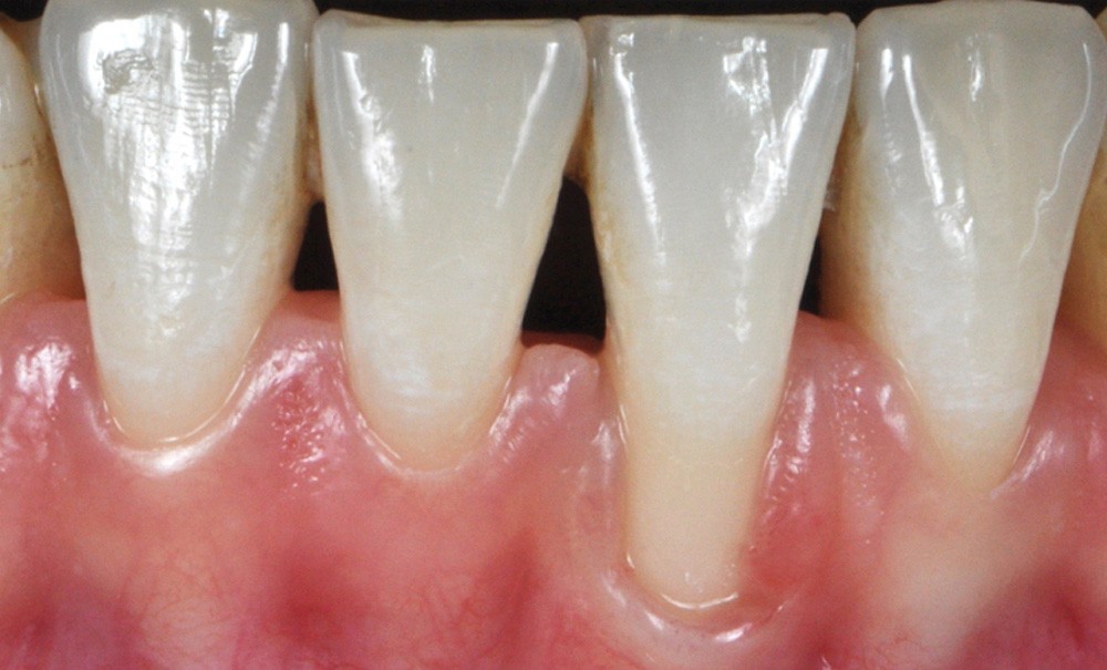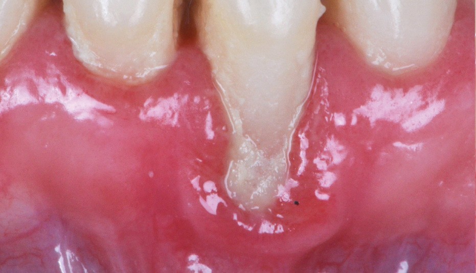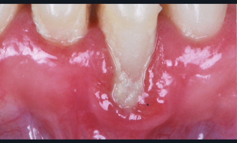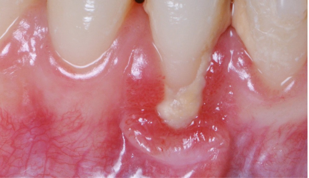 La gencive marginale est cliniquement représentée par une ligne festonnée qui suit le contour de la jonction amélo-cémentaire, 1 à 2 mm en coronaire. La récession gingivale est un déplacement apical de la gencive marginale avec exposition de la surface de la racine. La physiopathologie de la récession gingivale peut être divisée entre les causes directes et les facteurs prédisposants. Dans les cas de récession gingivale, le premier mécanisme de la migration gingivale apicale est une perte de la crête osseuse alvéolaire. Lorsque l’os est limité à une surface de dent, en général vestibulaire, le défaut osseux est plus connu sous le terme de déhiscence.